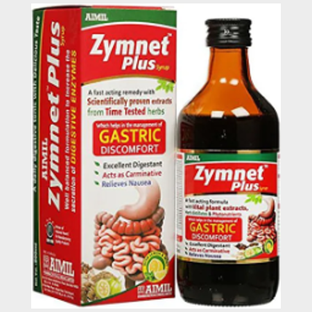 Zymnet Plus 200ml Aimil ₹252.00Zymnet Plus Syrup is an ayurvedic formulation that increases the secretion of digestive enzymes. It is made up of scientifically proven extracts that tone up digestion. Zymnet Plus Syrup improves appetite and relieves gastric discomfort.