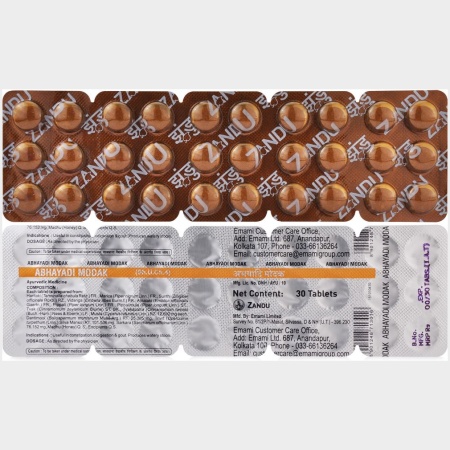 ABHAYADI MODAK TAB by ZANDU is an ayurvedic proprietary medicine that has a laxative effect. Apart from being laxative it also aids in proper digestion and maintains healthy digestion. It cleanses the system, provides relief from constipation, acidity, gas. It also helps in joint pain, gouty pain, and mania. It restores stomach acid balance naturally and relieves discomfort and pain. It provides sustained relief from acidity without any side effects.