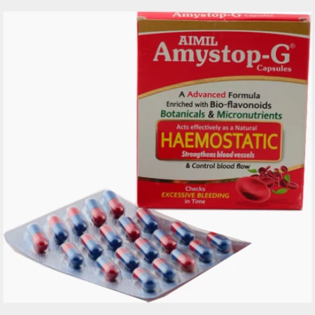 Amystop G is indicated for dysfunctional uterine bleeding and bleeding induced by intra-uterine devices. It can be taken along with the regular calcium and iron supplements and also exerts ant-anemic activity. Directions of use: Take two capsules three times a day