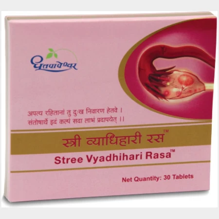 Dhootapapeshwar Stree Vyadhihari Rasa contains pure ayurvedic ingredients. A magnificent Kalpa valuable in Prajanan Sansthan Vikruti of females is ‘Stree Vyadhihari Rasa’. It contains Dravya which are useful in StreeBeeja Janan (Ovulation) like Latakaranj Beeja, Shatapushpa and Karpasamoola and so on. Sootikabharan Rasa present in Stree Vyadhihari Rasa is compelling in Vishar delivered due to Prajanan Sansthan Vikruti just as it helps in the arrangement of Prajanan Sansthan for Garbhadharana.