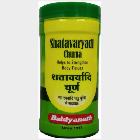 Baidyanath Shatavaryadi Churna is herbal ayurvedic medicine. This medicine is prepared from five medicinal herbs which have immunomodulator, galactagogue (stimulates breast milk), aphrodisiac and rejuvenating properties.