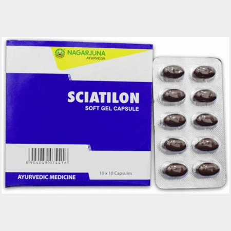 Nagarjuna Sciatilon Soft Gelatin Capsule contains Sahachara, Ashwagandha,Ginseng, Somnifera,