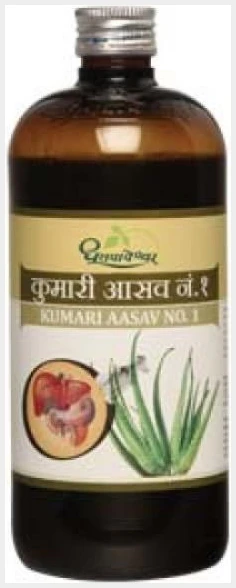 Baidyanath Kumari Asava is a combination of kumari, Triphla,Trikatu, Akarkara, Chaturjat, Dhania, Devdaru, Pipalmula, Chitrakmool, Punarnava Loha Churna, Daru Haldi, Rasna, Danti Mool, Swarn Makshik Bhasm, Pippal, Dhataki Pushpa, Jaggery (Gud).