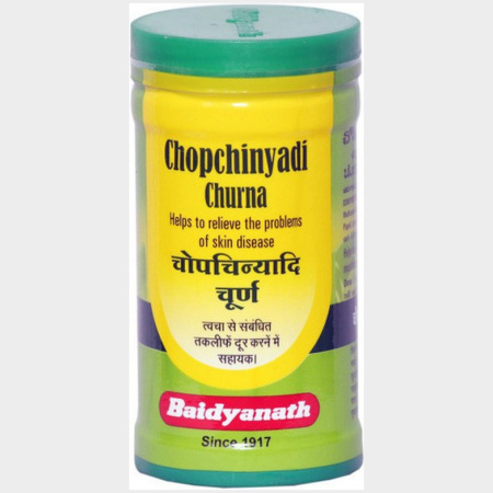 Baidyanath Chopchinyadi Churna is polyherbal ayurvedic medicine in powder form which is useful in syphilis, gout and skin problems. This churna contains Chopchini (Smilax china), a medicinal herb used traditionally to treat skin problems and seminal weakness.