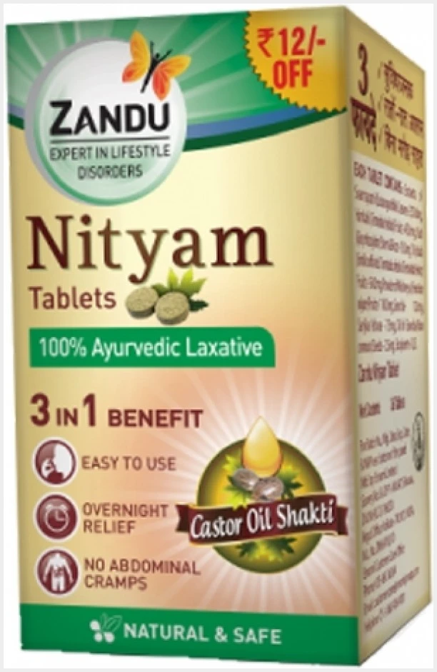 Zandu Nityam Tablet is a unique formulation, enriched with 7 powerful Ayurvedic ingredients, which gently cleanses & soothes intestinal walls ensuring regular bowel movement