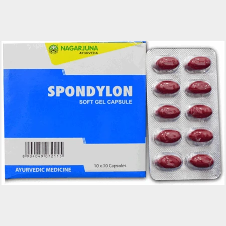 Nagarjuna Spondylon Capsules is an ayurvedic medicine that is primarily used for the treatment of Cervical Pain, Spondylitis, Shoulder Pain, Antioxidant. The key ingredients of Nagarjuna Spondylon Capsules are Ashwagandha, Pippali, Punarnava, prasarini.