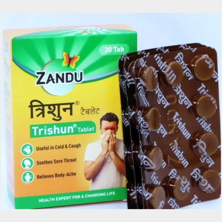 Zandu Trishun Tablet Zandu Trishun helps strengthen the immunity of the body. It also plays a vital role in fighting common cold keeping you healthy And strong.