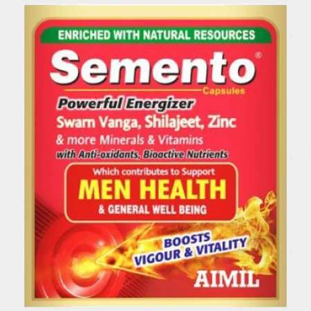 Semento Capsule contains ayurvedic preparations Tribulus Terrestris(Gokhru), Mucuna puriens (Kaunch), Anacyclus pyrethrum (Akarkara) and Withania somnifera(Ashwagandha).
